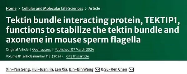 2021年,Gui M等人在Cell雜志發(fā)表文章[1]首次利用冷凍電子顯微鏡(cryo-EM)解析了牛氣管纖毛的DMT結(jié)構(gòu),發(fā)現(xiàn)一種功能未知的新蛋白,命名為TEKTIP1(Tektin bundle interacting protein 1),其位于tektins束的中心,因此推定TEKTIP1可能發(fā)揮著組裝和/或穩(wěn)定tektins束的關(guān)鍵功能。