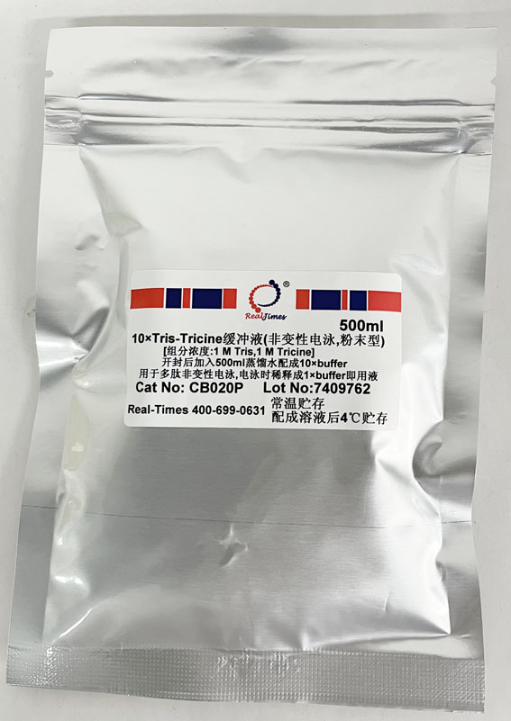 說明:開封后將全部干粉溶于500ml蒸餾水中即配成10×Tris-Tricine緩沖液,電泳時稀釋成1×緩沖液即用液,不要調(diào)節(jié)pH。