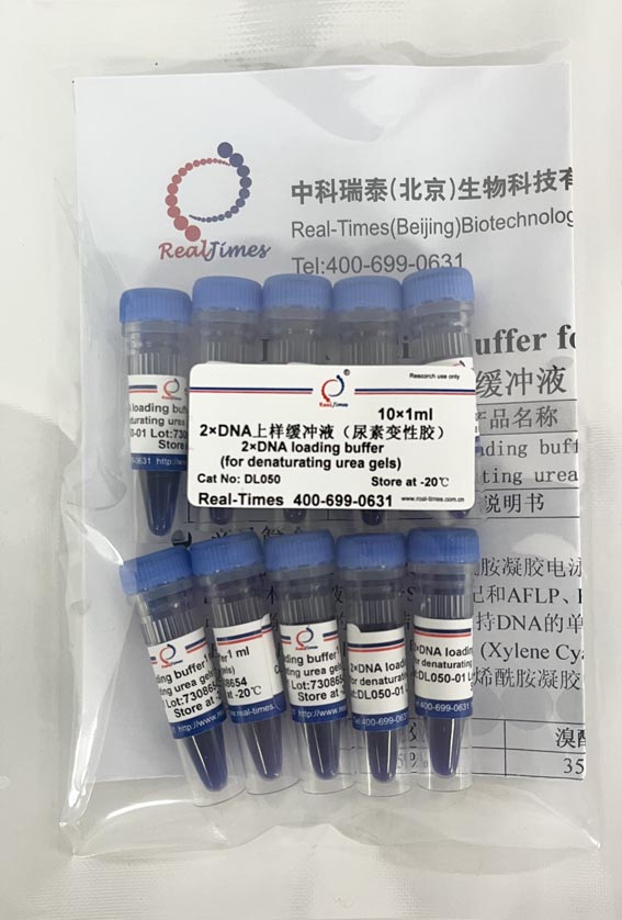 本制品是尿素變性聚丙烯酰胺凝膠電泳時使用的上樣緩沖液,適用于分離短的單鏈DNA。本緩沖液常用于SSR標(biāo)記和AFLP、RFLP等基因分型檢測。本制品中含有甲酰胺,可以解除DNA的二級結(jié)構(gòu),保持DNA的單鏈構(gòu)型;另外,本制品中還含有溴酚藍(lán)(Bromophenol Blue)、二甲苯菁 (Xylene Cyanol