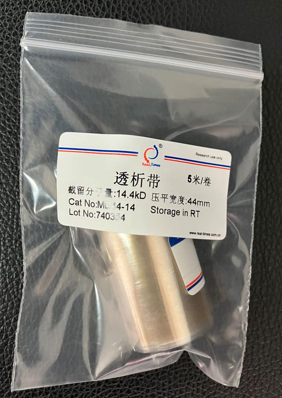 透析膜可用動(dòng)物膜和玻璃紙等,但用的最多的還是用纖維素制成的透析膜,目前常用的是美國Union Carbide (聯(lián)合碳化物公司)和美國光譜醫(yī)學(xué)公司生產(chǎn)的各種尺寸的透析管,截留分子量MWCO(即留在透析袋內(nèi)的生物大分子的最小分子量)。截留分子量越大也就是說透過性越大。