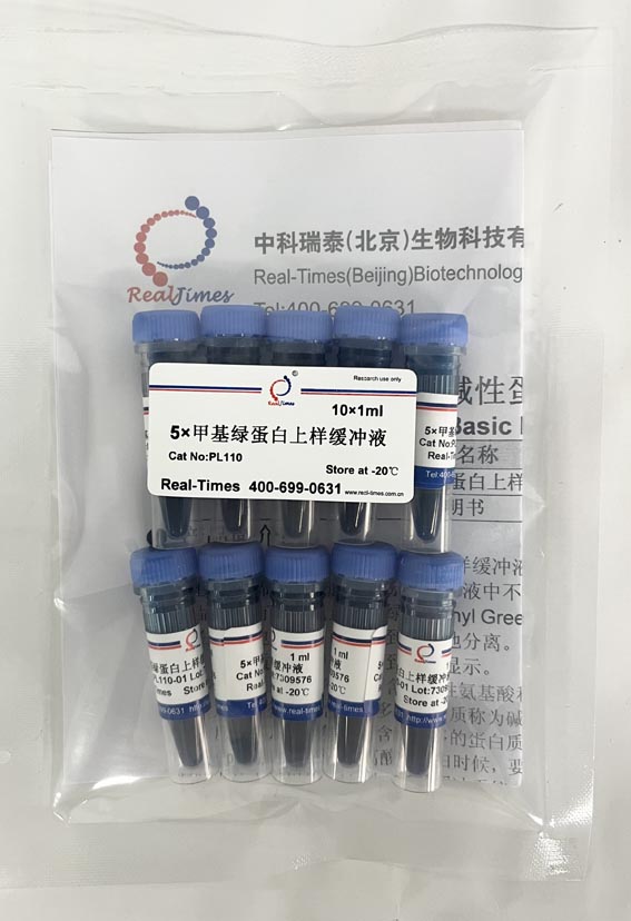 本制品是堿性蛋白電泳專用上樣緩沖液,用于堿性蛋白樣品進(jìn)行 Native-PAGE(非變性聚丙烯酰胺凝膠)電泳,緩沖液中不含SDS,不含還原劑如DTT,β-巰基乙醇等。制品中含有示蹤色素甲基綠(Methyl Green),可以確認(rèn)電泳的進(jìn)行情況。使用本制品,蛋白質(zhì)在電泳膠中可以得到很好地分離。電泳后用考馬斯亮藍(lán)或者銀染色等方法染色后,蛋白質(zhì)電泳帶能夠得到清晰顯示。