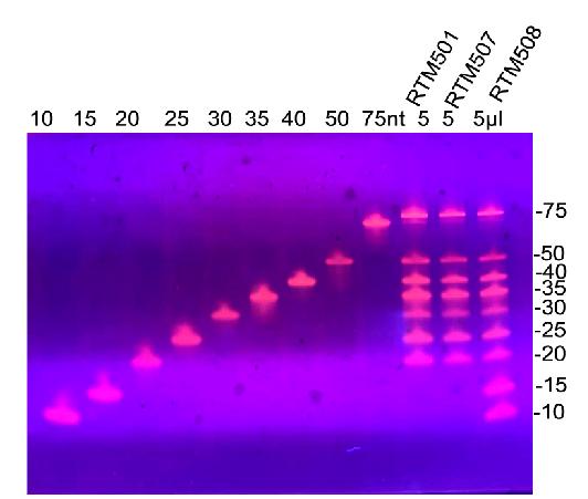 lane 10:RTM501,單鏈DNA Marker(20-75 nt)預混型,上樣量5 μl