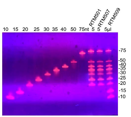 lane 10:RTM501,單鏈DNA Marker(20-75 nt)預混型,上樣量5 μl
