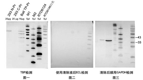 1. 在完成Western化學(xué)發(fā)光檢測(cè)后,NC膜或PVDF膜用適量蒸餾水中震蕩漂洗5分鐘;重復(fù)漂洗2次;1×TBST漂洗一次。